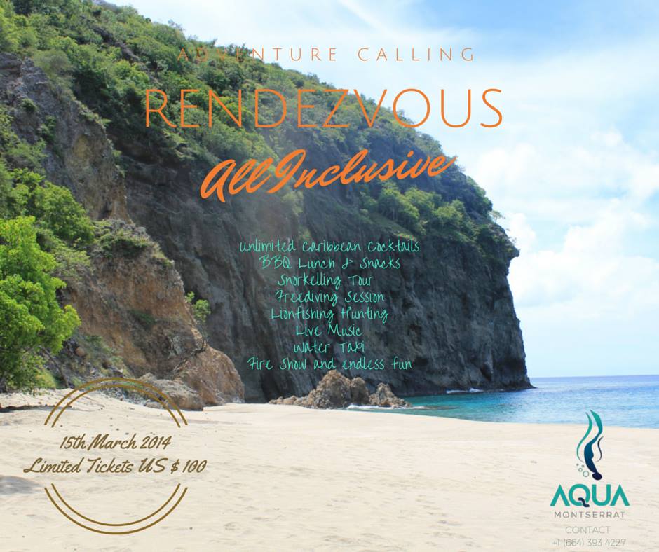 Come join Aqua Montserrat at Rendezvous this SUNDAY, MARCH 15. Water Taxi departs Port Little Bay 11:30 onwards.