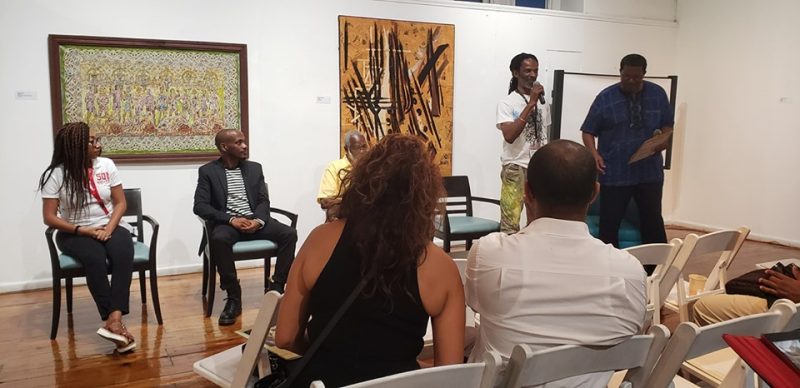 The work of Visual artist Kelvin “Tabu Duberry” was selected to represent Montserrat in the Across Boundaries exhibition at the National Museum and Art Gallery of Trinidad & Tobago. Six of the 10 pieces sent were used in the exhibition which featured artists from across the Caribbean and ran for the length of the festival. He also participated in the Artist Talk along with fellow artists from Belize, Haiti and Guyana. Tabu also taught classes at his booth in the Craft Market and shared his work with the thousands who visited the CARIFESTA Grand Market daily.
