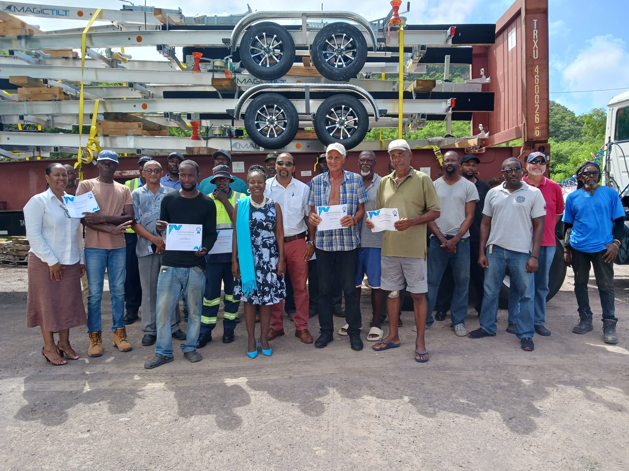 Minister Buffonge said it gave him pleasure to hand over the trailers. “I have lost fishing equipment at sea, so I understand the excitement of the fishers today. We need a safe harbour for our vessels, and I hope to be able to deliver this before retirement.”
