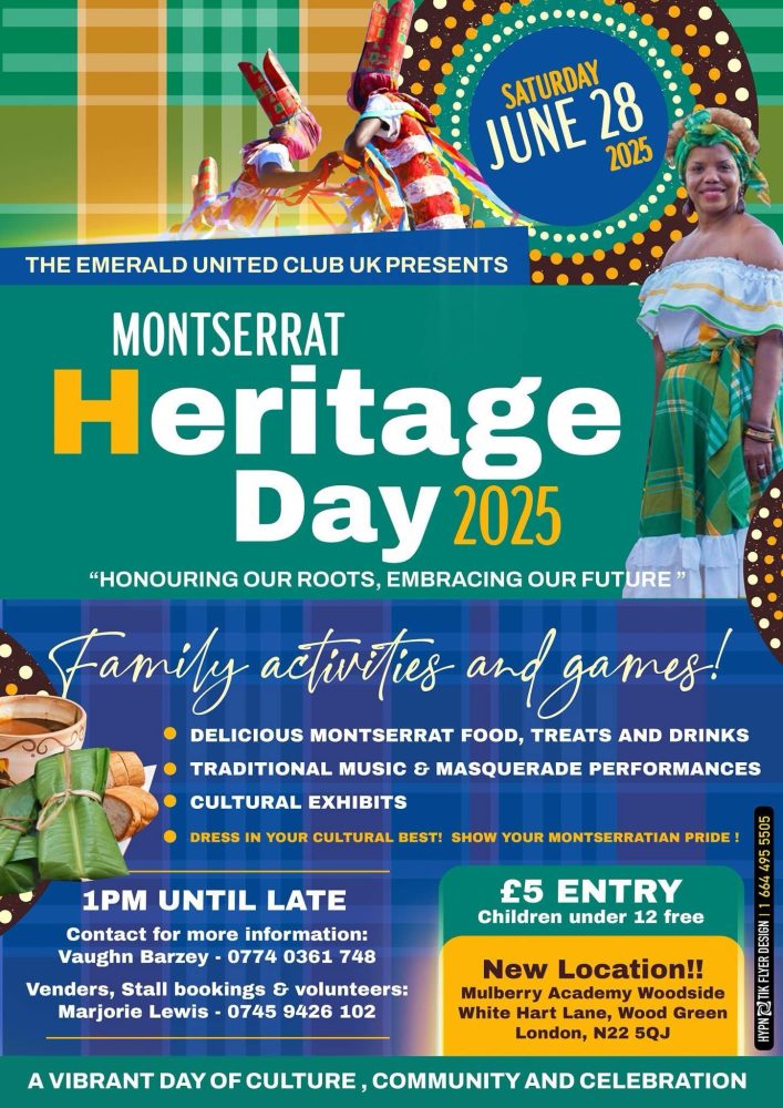 The colours, flavours, and rhythms of Montserrat will take centre stage in London on Saturday, June 28, 2025, as the Emerald United Club UK presents Montserrat Heritage Day at its new location: Mulberry Academy Woodside, White Hart Lane, Wood Green, N22 5QJ.