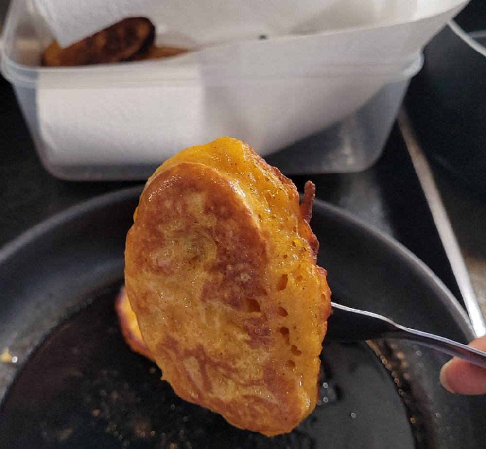 Growing up, pumpkin fritters were a treat you would get in my house the day after soup day or a day when there was pumpkins served with a fish meal. My mother would always save some of the pumpkin and it would be a treat waiting for us to have when we got home from school.